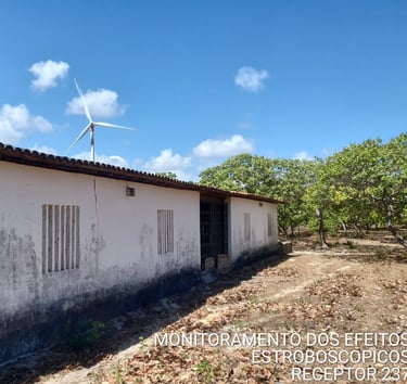 Efeito Estroboscópio: O efeito estroboscópico é um impacto visual, causado pela sombra em movimento das pás dos aerogeradores, que pode gerar desconforto ou mesmo prejuízos à saúde humana em determinadas condições. Esse fenômeno ocorre especialmente quando o sol está em uma posição baixa no horizonte, criando sombras intermitentes que podem afetar residências ou locais com permanência humana prolongada.